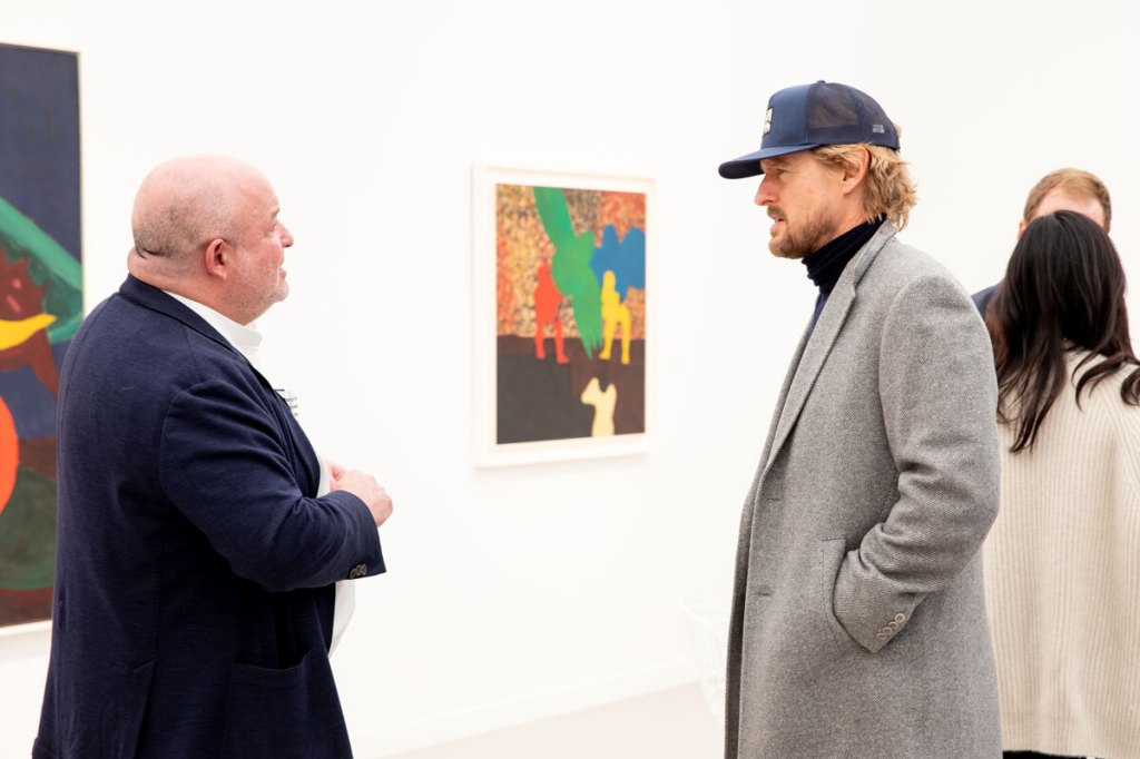 L’acteur Owen Wilson, un incontournable de Frieze LA, a été vu en train d’admirer le travail sur le stand de la Pace Gallery. Le facile à vivre Wilson apparaîtra bientôt dans le Bob Ross–inspiré Peindre en tant que peintre de bonne humeur et aux cheveux crépus Carl Nargle, qui joue dans l’exposition de peinture la mieux notée du Vermont.