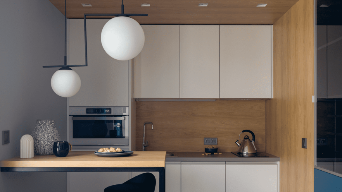 Pensez à ce qui est le plus important pour vous – la fonctionnalité ou l’esthétique. Dans tous les cas, les façades de cuisine lisses (sans panneaux) cachent mieux les dissonances d’une cuisine modulable, ce qui est particulièrement vrai pour les petites pièces.