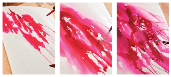 - Pendant que la peinture est encore humide, prenez un pinceau très fin et étalez la couleur sur les zones humides. Les lignes fines lieront les remplissages solides ensemble, définiront la direction du flux et apporteront de l’énergie à votre travail, tout en le diversifiant visuellement.